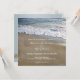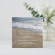 Una romántica invitación a la boda con una imagen de las olas que fluyen sobre la arena en un día de ensueño. Hermoso si planeas una boda en la playa.