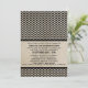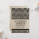 Moderna con un toque vintage es esta invitación a la boda de Chevron de Moda. Este diseño presenta un fondo de papel antiguo y un patrón de chevron zigzag en negro. Fácil de personalizar, simplemente añada los detalles de su boda. Haga clic en "Personalizar" para encontrar más opciones de personalización.