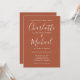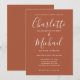 Con nombres de estilo característico, esta elegante invitación a la boda puede ser personalizada con su información en letras blancas de moda en un fondo de terracota. Puede personalizar del color de fondo para que coincida con el tema boda. Diseñado por Thisisnotme©