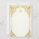 Una invitación a la boda de diseño intrincado, con una carta tradicional de estilo árabe con motivos dorados ornamentados y una caligrafía elegante, ambientada con un fondo blanco cremoso, decorada con delicados motivos florales y delicadas formas geométricas, con una textura delicada que se asemeja al papel hecho a mano, invitando al espectador a completar los detalles de la ocasión especial. Con su forma clásica rectangular y sus delicados bordes que le dan un toque de sofisticación y lujo, es ideal para transmitir la alegría y la belleza de un boda.