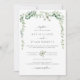 Un diseño vegetal acuático de eucalipto. Los detalles del texto y los colores se pueden personalizar para que coincidan con los colores del tema boda.