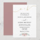 Invitación a la boda de Eucaliptos Rústicos Rosas. Personalice estas elegantes invitaciones nupciales con las iniciales del monograma de la novia y el novio y los detalles del boda. La parte delantera de la invitación es de un estilo sencillo y elegante con un guión de tipografía de oro para las iniciales de monograma. La parte trasera de la tarjeta está decorada con un moderno rosa polvoriento.