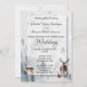 Esta plantilla de Invitación a Bodas de Invitación para Bodas de Invierno Woodland incluye acuarela de la escena de bosques con ciervo. Perfecto para bodas de diciembre/enero. Personalizar esta invitación única de boda de vacaciones con tus propios detalles haciendo clic en el botón "personalizar".