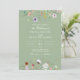 Invite a sus huéspedes con estilo con esta invitación a la boda de Sage Green Wildflower, que incluye flores silvestres dibujadas a mano con colores suaves y románticos, colocadas sobre un fondo verde sabio y mutilado. Perfecto para bodas rústicos, botánicos, boho o de la temática del jardín, esta invitación mezcla elegancia y naturaleza sin esfuerzo. Personalizar con sus nombres, fecha de boda, ubicación y otros detalles personales usando el sencillo editor de Zazzle. Imprimido en papel de alta calidad y disponible en múltiples opciones de tamaño y papel, este diseño forma parte de nuestra colección de Bodas verdes de Flor Silvestre (Wildflower Sage Green Sage), lo combina con tarjetas RSVP, guarda las fechas y más para un aspecto cohesivo.