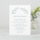 Una simple y dulce invitación a la boda. Presenta elementos botánicos dibujados a mano en un hermoso color verde sabio. Vea los otros elementos coincidentes de la colección Boda de Flor silvestre.
