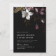 Este extraordinario diseño evoca una atmósfera de misterio y romanticismo, ideal para los que buscan un boda con un toque de encanto bohemio. La invitación muestra un impresionante fondo negro que exuda sofisticación y prepara el escenario para una celebración inolvidable. Adornado con una variedad de flores oscuras y morales floridas, con una cautivadora mezcla de violeta profunda, violeta violeta y tonos tierra de marrón. Estas flores cautivadoras, que recuerdan a las flores silvestres que se encuentran en lo profundo del bosque, aportan un sentido de drama y profundidad al diseño.