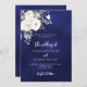 Para un boda elegante y romántico. Un fondo azul marino, de colores desiguales, decorado con flores blancas y rosas. Personalice y agregue sus nombres y detalles.