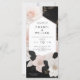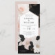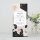 Elegante invitación a la boda inspirada en Chanel con flores de guijarro rosa brillante simuladas y follaje con acentos negros de moda. El lujo y el romanticismo crean una mezcla de sofisticación.