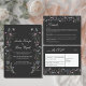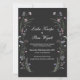 Tarjeta de invitación de boda con diseño de flores silvestres púrpura sobre fondo de carbón vegetal. ¡Hay artículos coincidentes disponibles! Buscar "WF1" en la tienda.