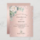 Una glamorosa invitación a la boda. Un rosa de oro falso de aspecto metálico. Decorado con diamantes de imitación rosa y flores blancas de color agua con vegetación. Personalice y agregue sus nombres y detalles del boda. Texto negro. Retroceso: fondo de color dorado rosa y diamantes, diseño postal. Sugerencia: Si no desea que se vea como una postal, haga clic en personalizar, vaya a la parte posterior y quite el separador y el sello postal.