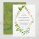 Una elegante tarjeta de invitación a la boda con acuarela verde salvaje con flores rosas. Será perfecto para bodas de primavera, bodas de verano, bodas en la playa y eventos similares. Para una personalización más avanzada de este diseño, haga clic en el botón "Personalizar" de arriba. También están disponibles los elementos coincidentes.