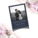 Esta elegante invitación a la boda minimalista cuenta con un diseño fotográfico completo con una tipografía serif limpia y un fondo marino clásico. Perfecto para las parejas que desean un toque atemporal y personal a su día especial.