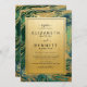 Moda Green Marble Gold Purpurina Geode Wedding Invitation presenta elegantes líneas de purpurina dorado con patrón de mármol abstracto de geodésico verde esmeralda y guión de caligrafía. Sofisticada y elegante invitación a la boda perfecta para las vacaciones.