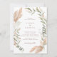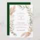 Una hermosa invitación a bodas de pampas color agua boho con hierba, con un borde de hojas verde con acentos de pasto pampas. Personalizar la redacción con el editor en línea. Cambie el color de la parte posterior a cualquier color que prefiera.