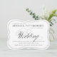 Clásica invitación a bodas en blanco y negro con un toque moderno que incluye el elegante guión de la palabra "Boda". La forma y el borde de corte a muerte son opcionales. La mayoría de las invitaciones que diseño serán excelentes para cualquier temporada: bodas de invierno, primavera, verano, otoño o otoño. También se clasifican como vintage, antiguo, elegante, formal, negro y blanco o tradicional.