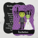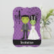Invitación a la boda de Halloween con Novia de Frankenstein en morado y negro.