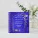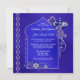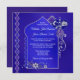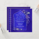 Invitación a una boda índigo azul y violeta, con un elegante diseño inspirado en henna mehndi o tatuajes que se asemeja a los que se ven en India o Medio Oriente.