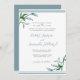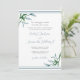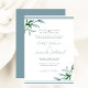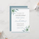 Esta Invitación a la boda de hojas verdes azules de color azul se ha diseñado con ramas verdes azules sobre un fondo blanco con guarnecido. El texto incluye: Los nombres de los padres de la novia y del novio, Los nombres de la novia y del novio, La fecha, hora, ubicación y dirección. El texto inverso incluye: Los detalles de la recepción en un fondo verde azul coincidente. Para personalizar, simplemente inserte sus detalles en nuestra plantilla sencilla, reemplazando el texto de ejemplo. No olvide ver la colección completa de Bodas Watercolor Blue Green Leaves para tarjetas y accesorios a juego.