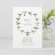 La invitación a la boda de este amante del colibrí incluye varias especies de colibríes nativas de Norteamérica. Personalízalo con los detalles de su boda utilizando las plantillas proporcionadas. Invitaciones revertidas a verde oscuro del bosque.