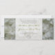 Invitación a bodas flacas con un fondo de hortensias blancas en la parte delantera y trasera. Personalice el texto verde y gris en el centro con detalles de su ocasión. Las palabras son de los padres de la novia. Busca artículos coincidentes en el periódico de Jill.