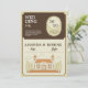 Invite a sus huéspedes en un estilo atemporal con esta elegante invitación matrimonial con un ilustracion de construcción vintage, una tipografía serif clásica y tonos cálidos y neutros. Perfecto para las parejas que quieren una celebración tradicional y encantadora.