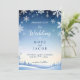 Anuncie su día especial con estilo con esta encantadora invitación a la boda de invierno. Con un cielo de gradiente azul nevado adornado con delicados copos de nieve blancos y un apacible paisaje invernal, este diseño captura la magia de la temporada. La elegante tipografía garantiza que los detalles de su boda se destaquen de manera excelente en el contexto helado. Perfecto para las parejas que planean una romántica celebración del invierno, esta invitación marca el tono para un día lleno de amor, calor y recuerdos intemporales. El texto del personalizable facilita la incorporación de tus datos personales y crea un gran tesoro para los huéspedes.