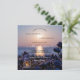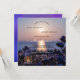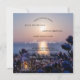 Invitación a la boda con puesta de sol en el océano con una linterna de diseño artístico con luces brillantes. Hermoso para una boda de invierno.