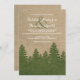 Esta rústica invitación a bodas de invierno presenta un ambiente de burlap con un bosque de pinos borreginos. Perfecto para su boda de invierno con temática rústica o vintage.