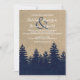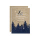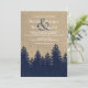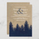 Esta rústica invitación a la boda de invierno presenta un ambiente de burlap con un bosque de pinos burlap azul marino. Perfecto para su boda de invierno con temática rústica o vintage.