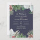 Presentamos la "Invitación a la Boda de Invierno con Verdor" - la primera pieza de nuestra nueva colección de bodas de invierno ahora disponible en nuestra tienda Zazzle! Este bonito diseño combina con gusto ramas de pino, pinecones, bayas y algunas hojas verdes, elegantemente colocadas sobre un fondo de azul medianoche. Los huéspedes podrán disfrutar del encanto de un maravilloso país de invierno, invitándolos a compartir la magia de su día especial. Las ramas entrelazadas de los pinos simbolizan el amor eterno que tú y tu pareja comparten, mientras que las bayas llenas de vitalidad infunden el diseño con calidez y alegría festiva. Disfrute de la belleza de la temporada invernal con esta invitación, perfectamente adaptada a las parejas que buscan un tema boda que combina sin esfuerzo el esplendor natural con la sofisticación eterna. Los elementos entrelazados de las pineconas y las bayas huecas crean un ambiente acogedor y de celebración, lo que lo convierte en una elección ideal para una boda de invierno reconfortante. El suave y silencioso fondo aporta una sensación de tranquilidad al diseño, lo que permite que los elementos centrales brillen en armonía. El texto de marfil añade un elemento de refinamiento, presentando elegantemente los detalles esenciales de su boda. Ya sea que usted visualice una reunión íntima o una gran celebración, la "Invitación a la Boda de Invierno Verde" marca el tono para un evento inolvidable lleno de amor y alegría. Y no olvidemos el agradable toque final de la parte posterior, un delicado arreglo de bayas heladas, que deja una impresión duradera a sus huéspedes.