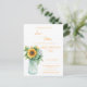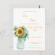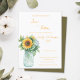 Invitación a la boda de acuarela de Mason Jar. Invite a sus seres queridos con esta rústica invitación a la boda de girasol, con un ramo de girasol acuático pintado a mano en un encantador frasco de albañil vintage. Con una suave vegetación, toques de flores azules y una elegante caligrafía naranja, esta invitación es perfecta para un boda rústico de granero, celebración del campo, boda de la casa de campo o tema floral de boho. Personalizable total con los detalles de su boda, este diseño le da un tono cálido y alegre para su día especial. Ideal para el otoño, el verano tardío o bodas al aire libre con una estética de moda rústica. No dude en ponerse en contacto conmigo para cualquier personalización adicional en mypaperlove2021@gmail.com