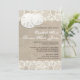 Esta elegante invitación a bodas en la playa presenta un fondo de color burlap recortado en encaje con solapados dólares de arena. Perfecto para una boda de playa de inspiración rústica o vintage. Nota - esta invitación contiene imágenes impresas de alta calidad de encaje, burlap y dólares de arena; no hay dólares de arena reales incluidos con esta invitación. Recomiendo esta invitación en el papel de lino para un toque de elegancia. Ofrecemos coincidencias para guardar las fechas, tarjetas rsvp, menús, programas y más. ¿No ves lo que estás buscando? ¡Déjanos una línea!