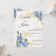 Esta elegante invitación a la boda incluye suaves flores de color azul, acentos de mármol dorado y una tipografía refinada sobre un fondo champán-blanco. Ideal para bodas de inspiración bohana o de temática natural, combina la belleza sin esfuerzo con la sofisticación moderna para una impresión atemporal.