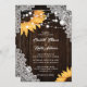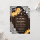 Esta elegante y romántica invitación a una boda floral con girasoles en un marco de madera de granero y encaje es perfecta para invitar a sus invitados a su rústica fiesta de bodas de campo/patio trasero/granero inspirada en los girasoles.