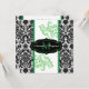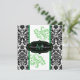 Esta dramática invitación a la boda en blanco y negro con damasco tiene acentos de rollos verdes y un monograma verde en una etiqueta negra central. Esta invitación sería perfecta para una boda de primavera, verano, otoño o invierno, y también funcionaría bien para otros eventos formales que requieren clase y gusto. Se muestra aquí en papel básico. El papel de lino también sería agradable, pero si quieres un papel de peso más pesado, sugiero el papel de hielo metálico, que le daría un atractivo opalescente. ****Por favor, tenga en cuenta que los papeles coloreados (plata metálica y oro, fieltro y moteado) alterarán los colores del diseño. TAMBIÉN, si cambia el tamaño de la invitación, o si cambia las fuentes, o el tamaño de la fuente, parte del diseño y/o el texto puede ser cortado. Todo se imprimirá como lo ve en su monitor. No veré tu invitación, y Zazzle NO corregirá nada (tipografía, alineación, etc.). El texto y el papel son todos personalizables. Si necesitas ayuda con esta invitación, por favor envíame ANTES de hacer tu pedido. Si necesita otros artículos coincidentes, envíe su solicitud a niteowlstudio@gmail.com.