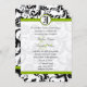 Vintage Patrones modernos de damasquinados florales en blanco y negro con invitaciones de Apple Green Trim Wedding. Perfecto para el barroco rococó, el renacimiento medieval, el Art Nouveau Art Deco, el Gatsby Roaring de los años 20, los Bodas victorianos o los elegantes locales temáticos de los Bodas de la granja.