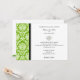 Clásica y de moda, totalmente personalizable y invitación personalizada a la boda en monograma damasco negro y verde manzana. Deja que tu estilo brille en estas invitaciones. Coincidir guarda las tarjetas de fecha y los imanes están disponibles en esta tienda.
