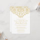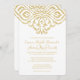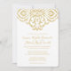Esta elegante y vintage invitación a la boda incluye un delicado adorno con damasco de oro en un fondo blanco. Perfecto para un boda de temática vintage o art deco.