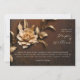 Invitación a la boda horizontal de la colección 'Reverie teatral'. Elija entre los encantadores antecedentes (azul, púrpura real, verde, marrón rojizo, negro de carbón y rojo de teatro), cada uno adornado con un follaje de flores metálicas 3D de oro elegante. Este diseño horizontal prepara el terreno para una celebración boda llena de drama, romance y sofisticación intemporal.