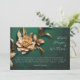 Invitación a la boda horizontal de la colección 'Reverie teatral'. Elija entre los encantadores antecedentes (azul, púrpura real, verde, marrón rojizo, negro de carbón y rojo de teatro), cada uno adornado con un follaje de flores metálicas 3D de oro elegante. Este diseño horizontal prepara el terreno para una celebración boda llena de drama, romance y sofisticación intemporal.