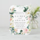 Elegante Invitación a la Boda con una corona de flores acuarelas en rosa y blanco con follaje verde. Para una personalización más avanzada de este diseño, pulse el botón "Personalizar". También están disponibles los elementos coincidentes.