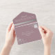 Celebra tu amor con esta romántica invitación de boda todo en uno con un polvoriento fondo rosa, acentos florales dibujados a mano y un elegante guión de caligrafía. La parte trasera incluye un espacio para una foto, mientras que la tarjeta RSVP adjunta ofrece una selección de comidas e información de retorno fácil para los huéspedes. Para más detalles, se puede añadir un enlace a la página web de coordinación. Por favor, tenga en cuenta que esta invitación "todo en uno" requiere un sobre separado para el envío de correo. Recomendamos emparejarlo con un sobre A9 estándar (5,75" x 8,75") para el mejor ajuste.