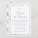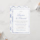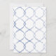 Esta singular invitación a la boda cuenta con un frente sencillo pero elegante, con una hermosa frontera de mármol delante y un patrón de estilo marroquí detrás. El diseño está decorado en azul gris-azul/flor de maíz, pero puedes cambiar el color a lo que quieras en tu extremo. CÓMO CAMBIAR SU COLOR DE DISEÑO: 1) Haga clic en el botón "Personalizar" o "Personalizar". 2) Elija un nuevo color de fondo. 3) ¡No te olvides de cambiarte la espalda también!