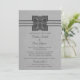 Regal y elegante Medallion Border Wedding Invitation con un medallón metálico de arte digital y un borde de tres rayas sobre un fondo gris claro. Esta invitación audaz y elegante es perfecta para un boda igualmente audaz y elegante. Fácil de personalizar, simplemente agregue los detalles de su boda en los campos de texto proporcionados. Haga clic en "Personalizar" para encontrar opciones de personalización adicionales como cambiar fuentes o tamaño de texto.
