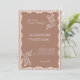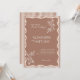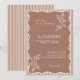 Celebre su día especial con esta moderna invitación a la boda, que incluye un borde ondulado dibujado a mano y unos caprichosos bordes de vieiras. El diseño es lúgubre, con delicados elementos botánicos y rayas de estilo retro, enmarcadas en un elegante diseño de vieira de color mocha marrón. Esta invitación combina la elegancia moderna con el encanto vintage, perfecto para las parejas que buscan algo único pero sin tiempo. Todo el texto es totalmente personalizable, lo que le permite cambiar las fuentes, los colores y los detalles del boda para que se adapten a su estilo personal. Disponible en múltiples variaciones de color para que su tema se ajuste perfectamente.