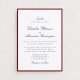Esta invitación a la boda encarna la estética del dinero antiguo con su rico borde rojo y su elegante tipografía. Perfecto para las parejas que buscan un aspecto clásico, atemporal y sofisticado que les da un toque de lujo sin exageración. Ya sea que esté planeando una boda en otoño rodeada de tonos cálidos o una boda de invierno con tonos ricos y profundos, esta invitación marcará el tono para una celebración elegante y refinada.