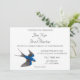 Este diseño de invitación a la boda de personalizable muestra mi pintura original de una golondrina en vuelo. La golondrina Barn Swallow es un pájaro elegante y ágil, así que pinté éste en vuelo; su larga e impresionante cola flameó detrás de las alas estiradas. La imagen transmite un alegre sentido de libertad - ¡qué maravillosa adición a tus artículos de papel, y una hermosa manera de anunciar tu día especial de amistad con la naturaleza!