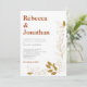 La invitación a la boda incluye un elegante diseño de hojas de óxido de oro y un esquema de color de terracota. Diseño tipográfico moderno y limpio con el color de terracota en la parte posterior de la tarjeta. Esta invitación está lista para que el personalizar tenga los detalles de su día especial. Parte de una gama de artículos de escritorio.
