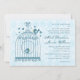 Una jaula de pájaro con pájaros amorosos y una sutil invitación a la boda de fondo de damasco.
