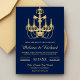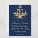 Sorprende a tus invitados con esta elegante invitación a bodas con una hermosa lámpara de araña dorada con un fondo azul oscuro. Simplemente agregue los detalles de su evento en esta plantilla fácil de usar para convertirla en una invitación única. Voltea la tarjeta para revelar una textura falsa de purpurina de oro en la parte posterior de la tarjeta. Esta invitación es totalmente personalizable. Todos los textos son editables y el color de fondo puede cambiarse fácilmente a lo que más le convenga.